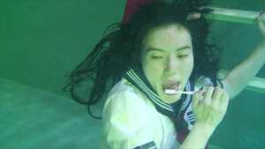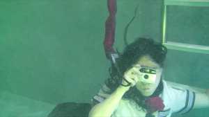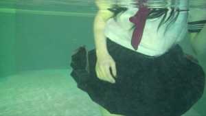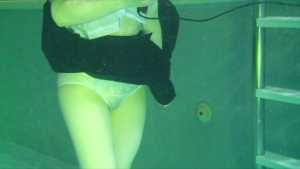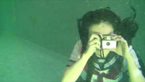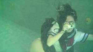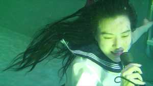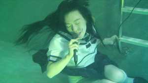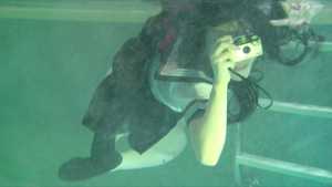 She enjoys life underwater: she takes photos underwater, brushes her teeth, and sings karaoke.