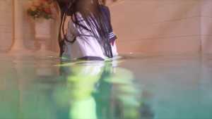 She Soaks in the Bathtub with Her White Dress On