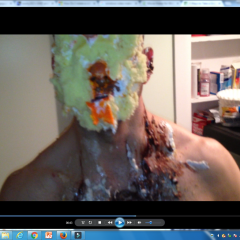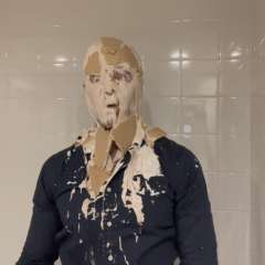 MessyMegan was surprised by theoldmanandthepie with a big sloppy cream pie to the face